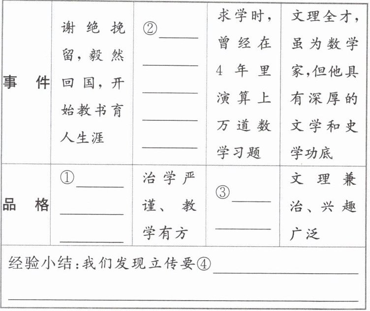 6.①热爱祖国、信心坚定 ②鼓励学生超过老师,设立数学讨论班,严厉批评熊全治 ③勤奋刻苦、态度认真 ④借助典型事件,再现人物精神品质