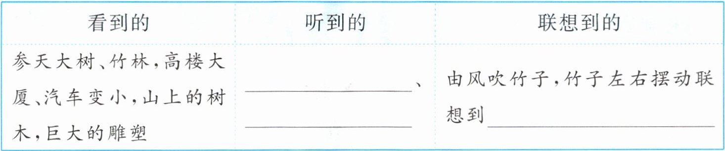 (2)语文要素 简要概括“我”登灵岩山的见闻,补全表格。