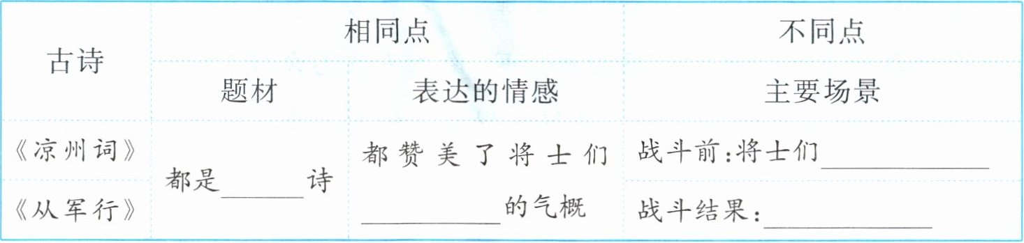 (3)对比阅读这两首诗,找出两首诗的相同点和不同点,补全表格。