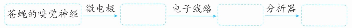 苍蝇的嗅觉神经$\xrightarrow{微电极}$ $□$ $\xrightarrow{电子线路}$$□$ $\xrightarrow{分析器}$$□$