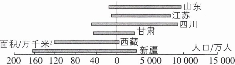 2新考法[2025陕西咸阳期中]读我国部分省级行政区域人口和面积统计图,图中数据说明了我国人口的分布特点是( )