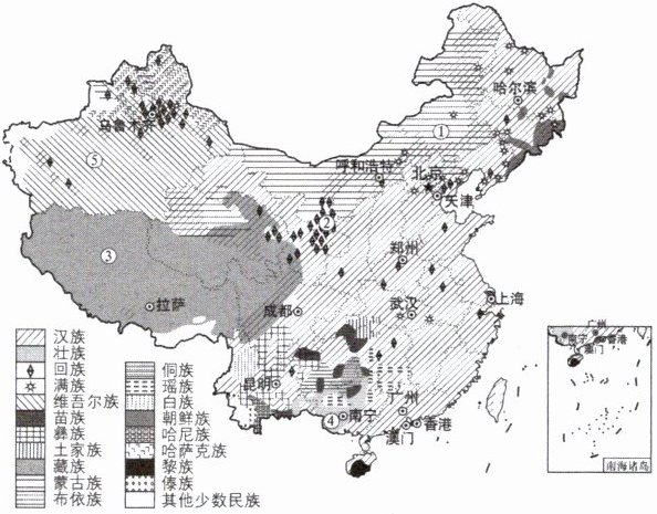 7 [2025贵州贵阳质检]读中国民族分布图,回答下列问题。