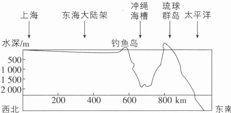 3 自古以来,钓鱼岛及其附属岛屿就是我国的固有领土。据我国钓鱼岛附近地形剖面示意图可知,钓鱼岛地处我国东海( )