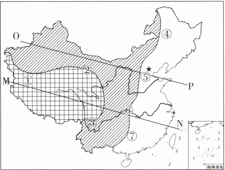 (1)图中斜线填充部分为第____级阶梯,地形以____为主,OP、MN两条线中,能体现我国地势三级阶梯分布特点的是______。
