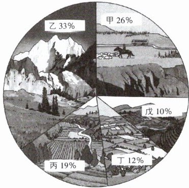 3.C 【解析】读图可知,图中丁类地形是平原,主要分布在我国地势的第三级阶梯。故选C。
