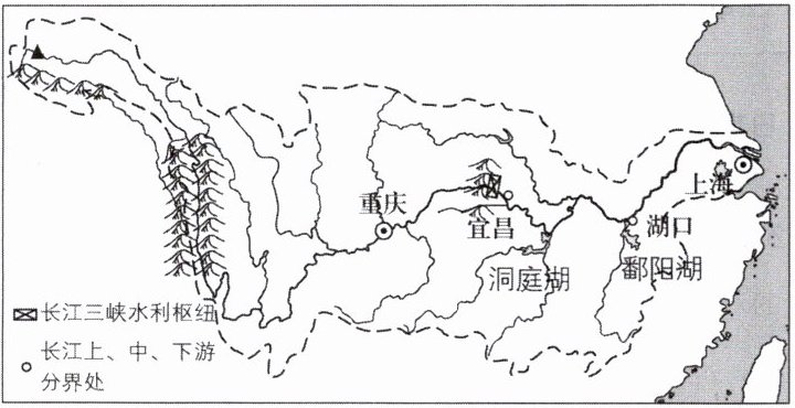 [2025江苏泰州期中]湖泊对河流水量有天然的调节作用。当河流水位高于湖泊时,河水注入湖泊,削减洪峰;当河流水位低于湖泊时,湖水注入河流,补充河流水量。下图为长江流域示意图。据此完成1~2题。