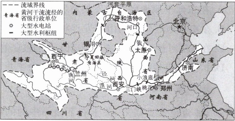 (4)河套平原农业发达,大量的黄河水用于农业灌溉,使水量明显减少。(2分)