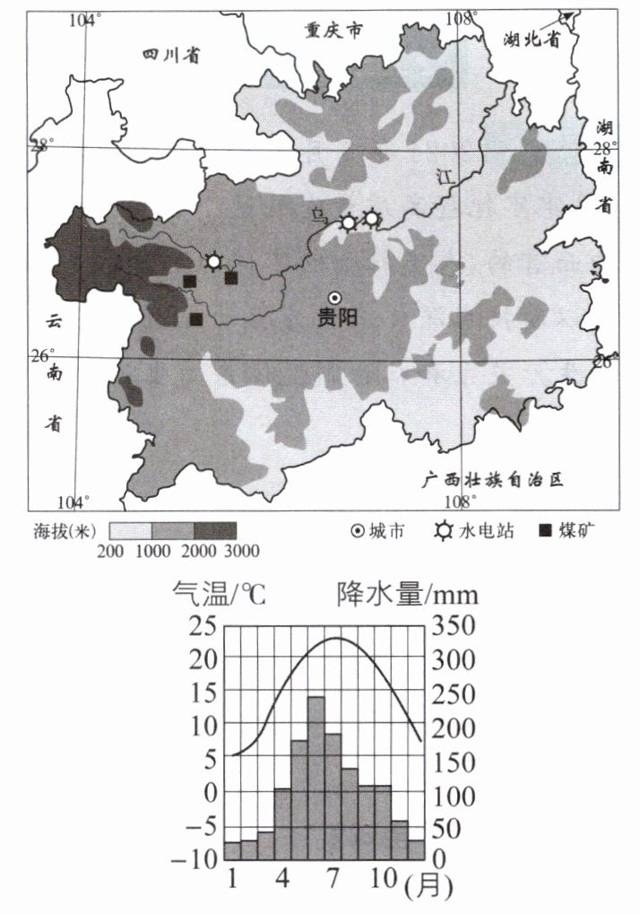 (2)贵阳市地处云贵高原,海拔高,夏季气温较低
