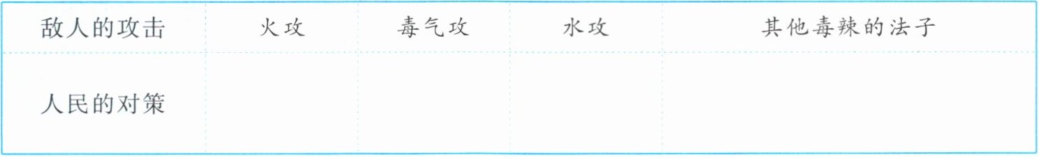 2.(1)示例:②地道是什么样的? ③为什么要在地道里作战? ④在地道里怎么打仗呢? (2)示例:③ 抓关键词句 为了粉碎敌人的“扫荡”。 (3)用土和沙灭火 放下吊板挡住 地道连接枯井暗沟,水流到枯井暗沟里去 各个村子地道相通,人们可以转移到旁的村子去