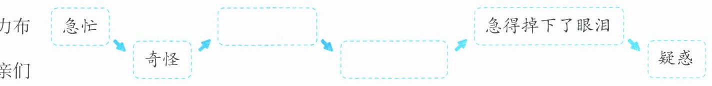 海力布 急忙 → 乡亲们 奇怪 → 海力布 ( ) → 乡亲们 ( ) → 海力布 急得掉下了眼泪 → 乡亲们 疑惑