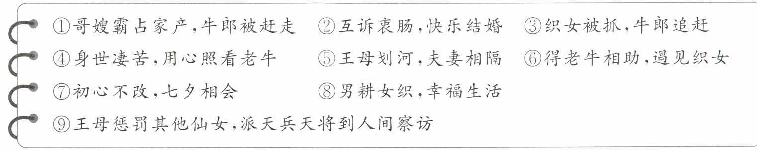 。(2) 小全发现,故事讲述的是牛郎、织女的爱情故事。如果给《牛郎织女》的故事绘制连环画,次要的人物、情节可以忽略,如上述情节中的