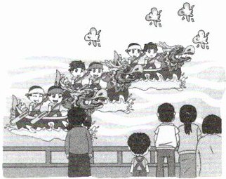 (3)示例:龙舟比赛正在进行,大家都浸在欢乐的海洋里。