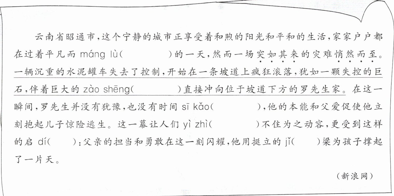 )直接冲向位于坡道下方的罗先生家。在这一瞬间,罗先生并没有犹豫,也没有时间 sī kǎo(思考