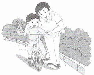 (6)小全在网上看到了右面这幅漫画,想到了成长中第一次骑自行车的情景。你的成长中有没有类似的“第一次”,请你照样子写一段话。