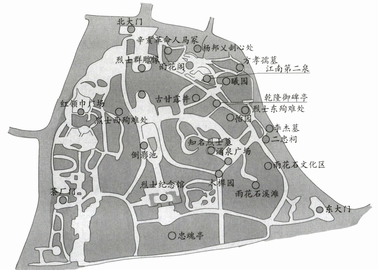 12. 由于时间有限,同学们在南京雨花台风景区内只能参观与革命纪念有关的景点,请你以北大门为起点,帮他们设计一条最佳路线。(5分)