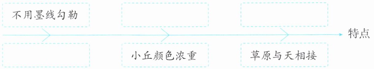 ①选文中 A 句作者直接描写了草原的景色,梳理内容,补充导图。