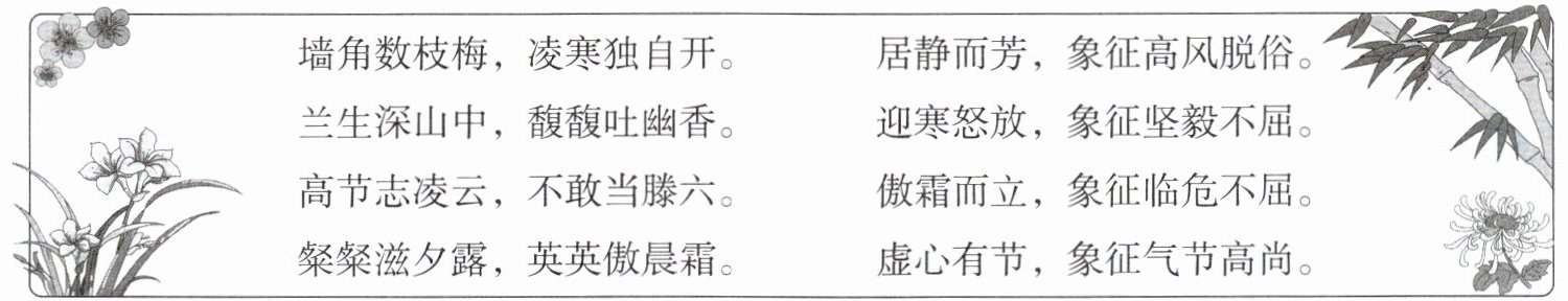 粲粲滋夕露,英英傲晨霜。 虚心有节,象征气节高尚。
