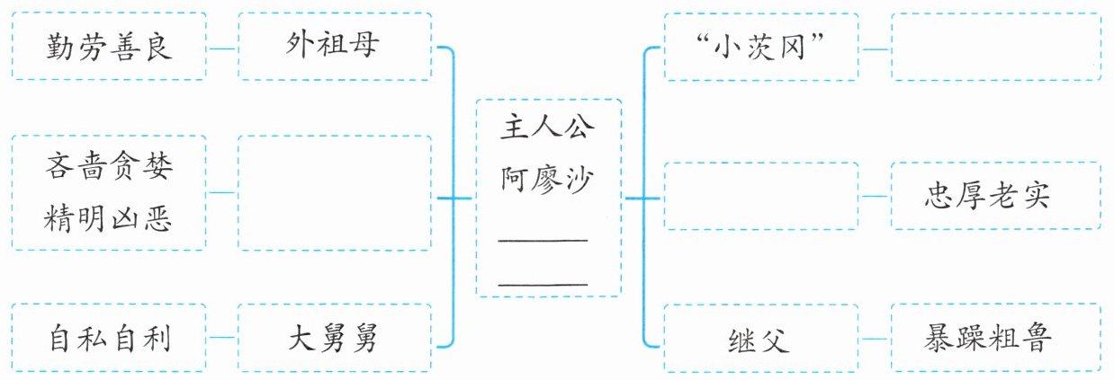(1)本学期我们一起读了《童年》一书,请你把下面的人物图谱补充完整。