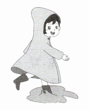 穿上雨衣 盼来雨天,快乐出门 兴奋、喜悦
