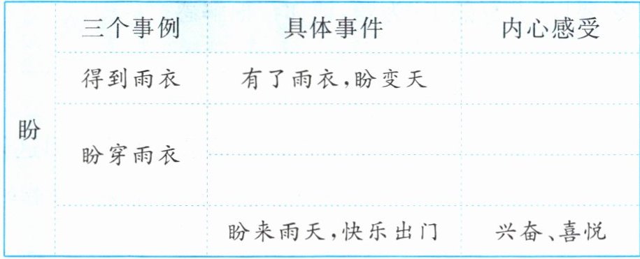 盼得到雨衣 有了雨衣,盼变天 欣喜、急切