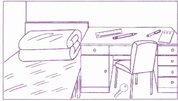 (be) his school things. His schoolbag is on the chair. Under the chair is his pencil box. His bottle is on the desk. His trousers are on the desk 17.