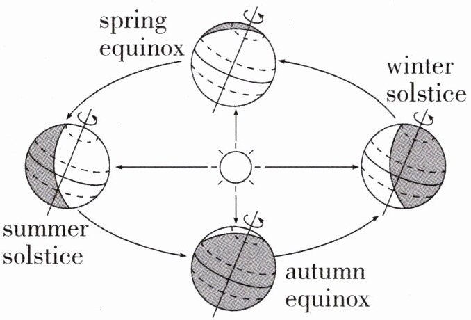 . It gets colder in autumn and winter because the days are shorter, and we get less light from the sun.The seasons fall at different times of year around the world. For example, China is to the north of the equator (赤道). Here, we experience summer from June to August. 3. ______