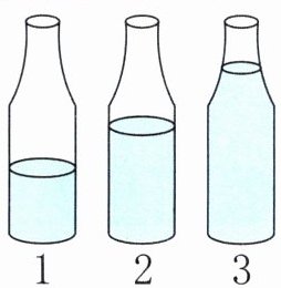 3 瓶内空气 解析:当用嘴贴着瓶口向瓶内吹气时,瓶中的空气柱会振动发出声音,空气柱越短振动越快,发出声音的音调就会越高,故发出声音的音调最高的是3号瓶子。