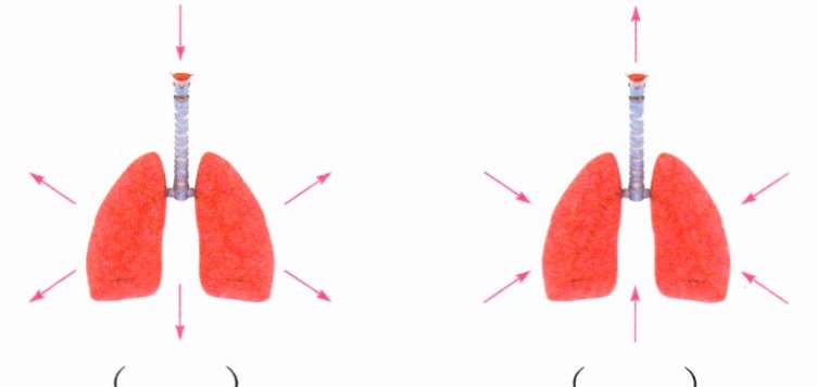 四、如图所示为肺吸气和呼气时的示意图,请在图中的括号中标注“吸气”或“呼气”。