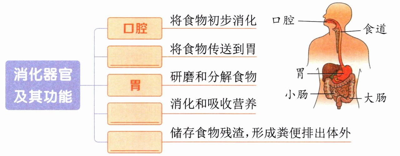 4. 消化器官可以将食物转变成我们可以吸收的营养物质和能量,这一过程叫作(