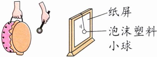 2. 敲击小鼓的鼓面时,纸屏上吊着的泡沫塑料小球会被弹起。在这个实验中,(