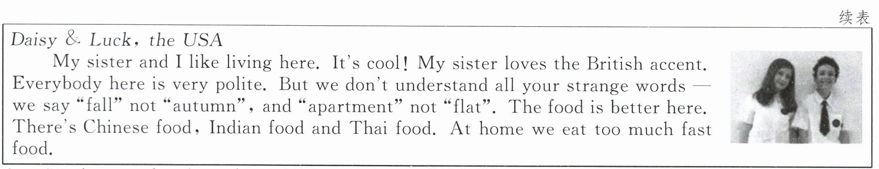 all the family members talking about their day is a good way to take a rest after a long day of work. Eating at restaurants is also different. In China, people like to talk and laugh while they 6. are eating