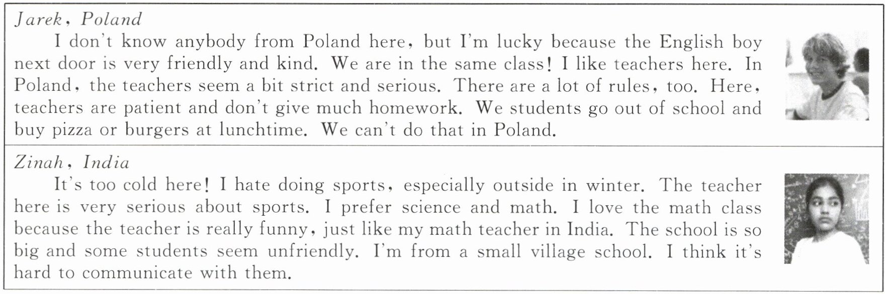 )2. In Zinah's eyes, what might her math teacher in India be like?A. Cold.
