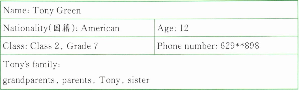 12 years old now. We are both in Class 2, Grade 7. Tony's phone number is 629**898. I often call him on the weekend and we go to play basketball together.