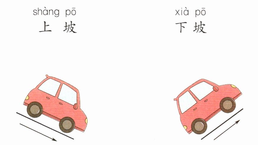 【解析】第1题考查学生对会写字、会认字的掌握。在短文中找出表示数字的汉字,并用横线画出来。第2题考查学生观察图片的能力。根据生活常识可知,上坡时车头处于较高的位置,下坡时车头处于较低的位置,所以第一幅图对应下坡,第二幅图对应上坡。第3题考查学生的理解能力。根据儿歌第一句话可知五个娃娃打算去上学。