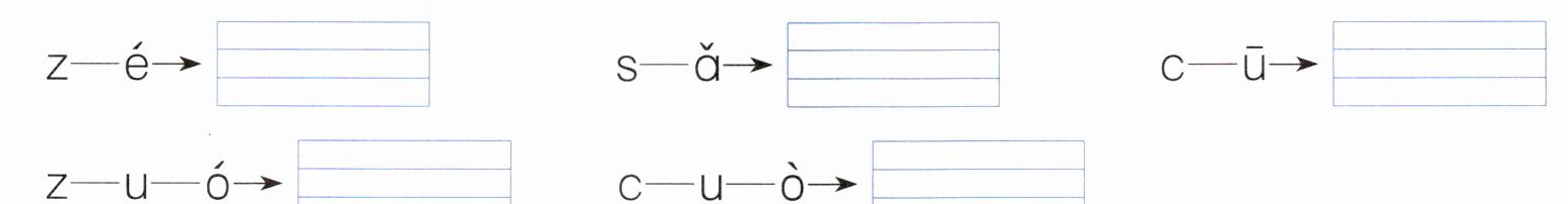 zé sǎ cū zuó cuò【解析】此题考查学生拼写音节的能力。按照所学的拼写规则,将音节正确地写在四线格内。![img alt=视频评讲答案]