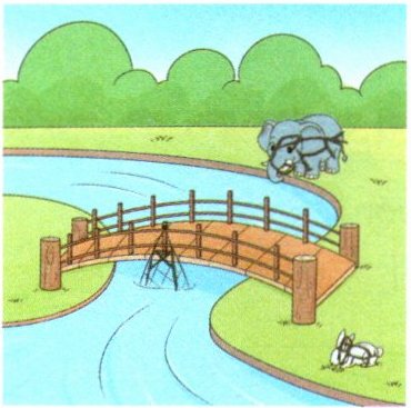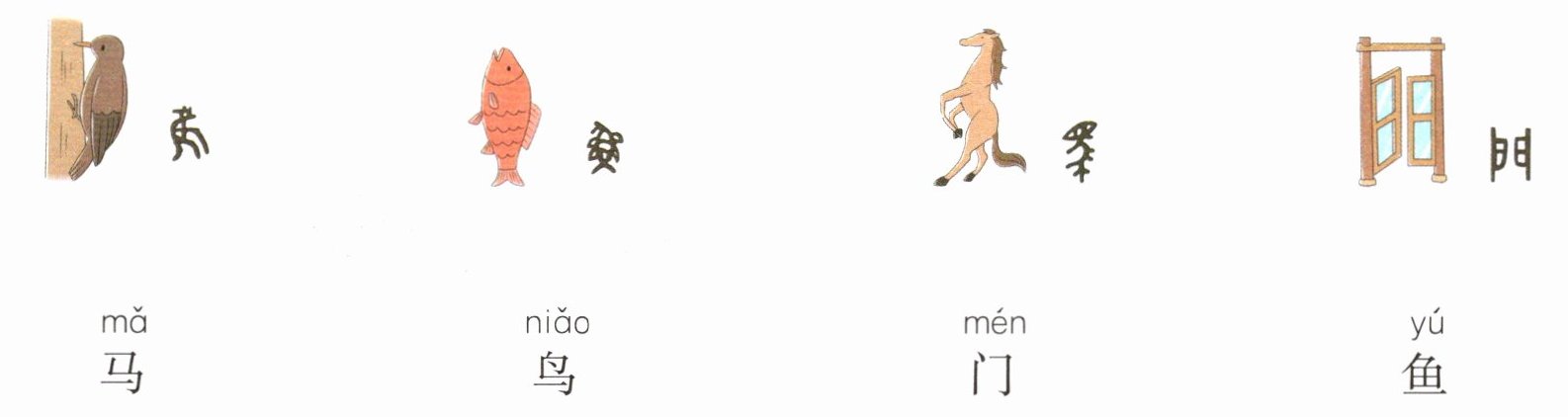 桥上挂着的是( ),近处在吃草的是( ),远处在喝水的是( )。
