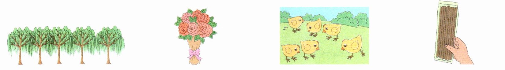 示例:棵 朵 只 双 排 束 群 袋【解析】本题考查学生对量词的运用。先确认图片中所画事物的数量,再结合知识积累及生活常识,选用不同的量词进行搭配。归纳总结常见量词辨析①“只”用于某些成对的东西中的一个、动物(多指飞禽、走兽)、某些器具、船只等。如,一只手、两只耳朵、一只袜子、一只兔子、一只箱子、一只小船等。②“支”用于队伍、歌曲(乐曲)、杆状的东西等。如,一支军队、两支乐曲、一支枪等。③“条”用于细长的东西、以固定数量合成的某些长条形的东西、分项的等。如,一条线、三条新闻等。④“头”用于动物(多指家畜)、蒜等。如,一头牛、一头蒜等。