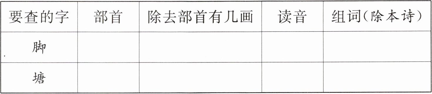 。|要查的字|部首|除去部首有几画|读音|组词(除本诗)|