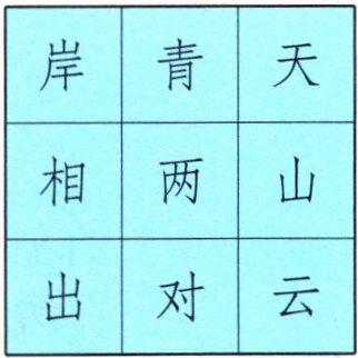 十、新考法 九宫格找诗句 右图中包含着一句描写山川的诗句,请写下来。