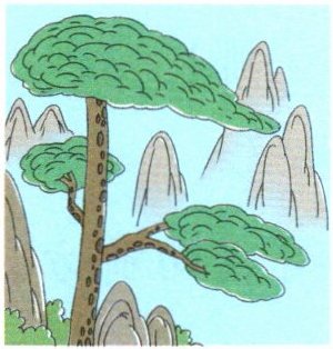 七、实验班原创 语言运用 下图为黄山的迎客松,请你从以下词语中任选几个描述一下它吧!