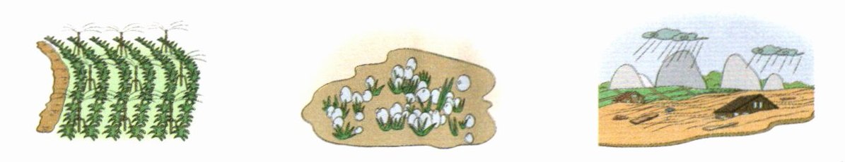 【解析】本题考查学生对课外知识的积累。仔细看图,可以发现第1幅图描绘的是农业灌溉,第2幅图描绘的是冰雹灾害,第3幅图描绘的是洪涝灾害。