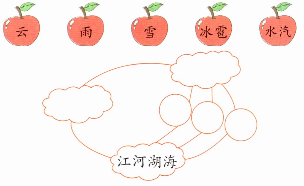 【解析】本题考查学生结合短文内容和课内外积累完成示意图的能力。结合短文内容可知,文章记叙了水滴旅行途中不断变化形态的过程,根据给出的水的不同形态和课内外积累,将示意图补充完整即可。