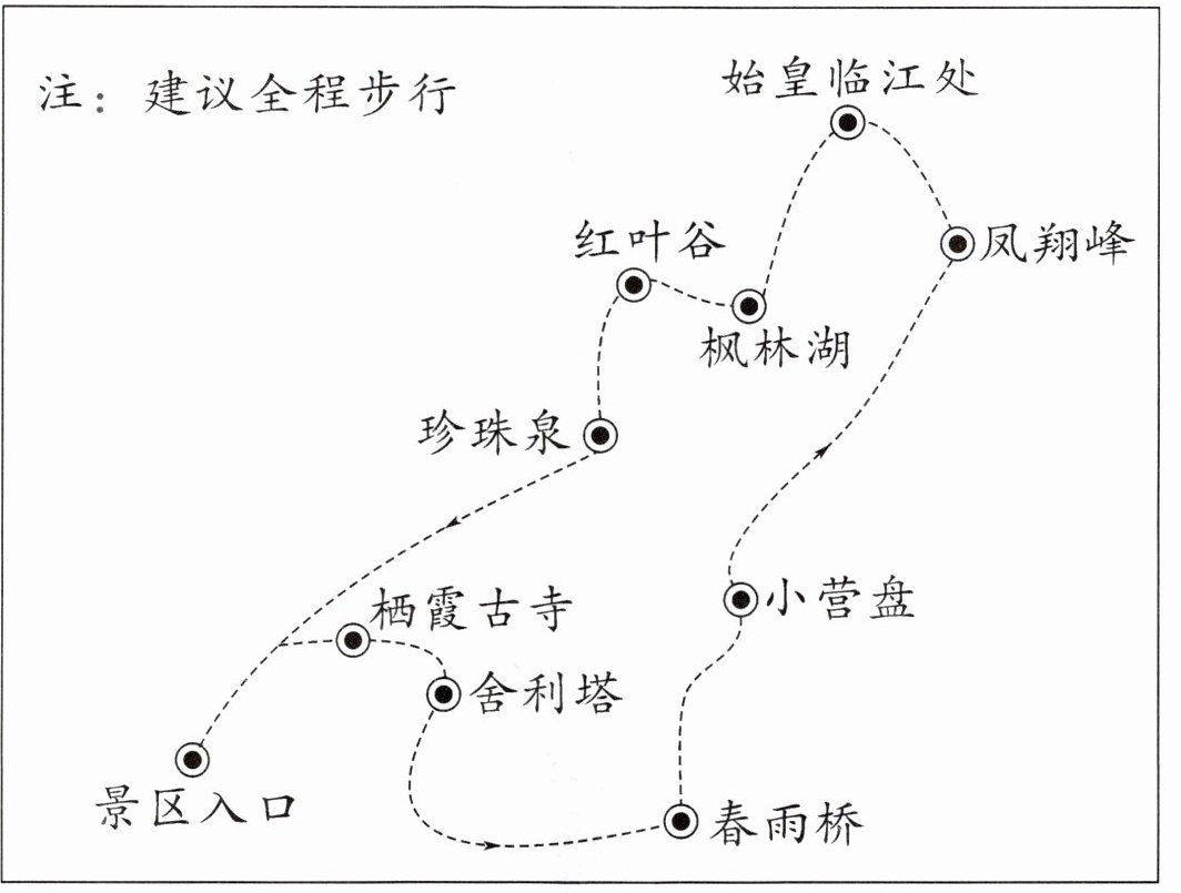2.C 【解析】从材料一中“最佳观赏点推荐山下主景区、枫林湖、始皇临江处到天街沿线、中大路银杏大道及南门”可知,在始皇临江处和枫林湖欣赏枫叶的观赏感比较好。