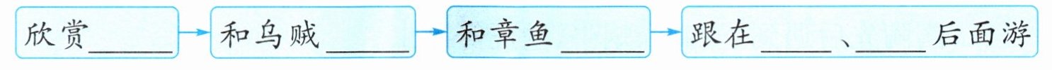 ③黄花鱼准备好了行装,高高兴兴地出发了。他奋力地向前游着,游着,把风,把浪,把珊瑚礁都抛在后面了。