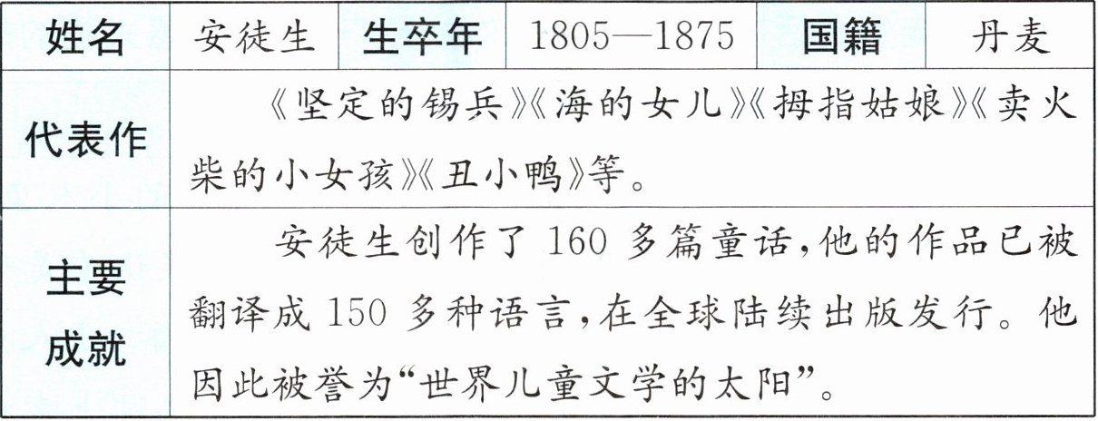 二、丁丁搜集了关于安徒生的资料,让我们一同阅读这些资料,深入了解安徒生。