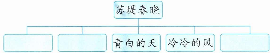 4. 诗中呈现了哪些景物?照样子,把下面的思维导图补充完整。