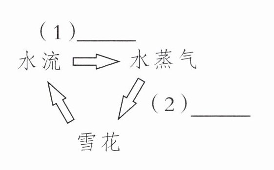 (2)凝华 【解析】结合小贴士和短文内容可知,由水流变成水蒸气的过程是汽化,由水蒸气变成雪花的过程是凝华。