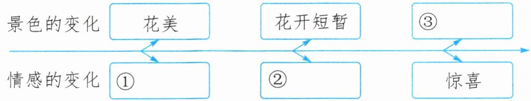 3. 短文中,作者在观察紫荆花时,情感是根据景色不断变化的。请根据短文内容填空。