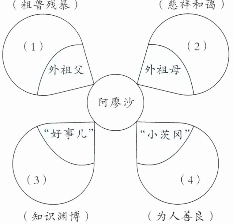 《童年》围绕主人公阿廖沙塑造了许多性格鲜明的人物形象,这些人物和阿廖沙发生了许多故事,请根据人物选择对应的情节,填在下面的横线上。(填序号)