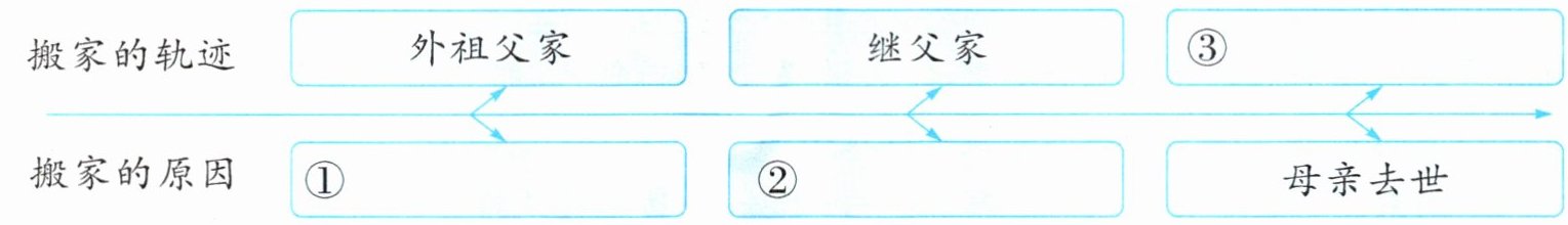 搬家的轨迹:______ → 外祖父家 → 继父家 → ______